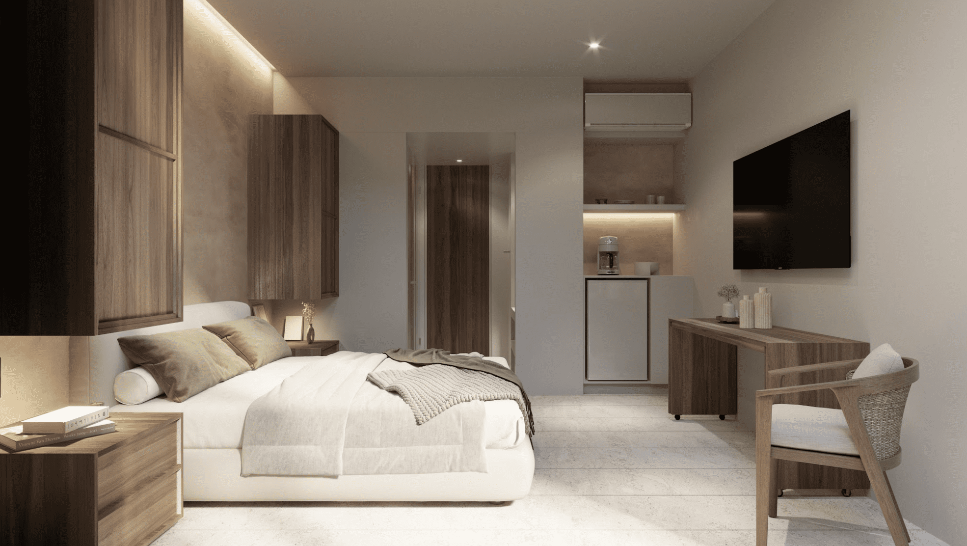 Delivery will be on spring 2024, there’s only 3 lock-off apartments available starting at $341,300us for a luxury studio with marble floors, granite countertop and a beautiful colombian carved stone outside tub, options for studios are also available, get yours now with friends and family price list so you can get a 40% capital gain once construction is completed.