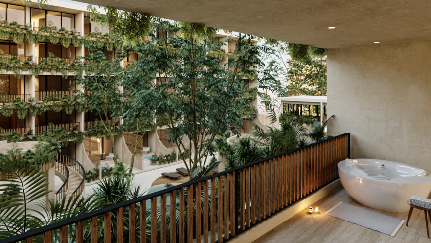 This one bedroom apartment with private jacuzzi will be delivered Furnished and equipped, one bedroom apartments with private pools are also available starting at $185,000us