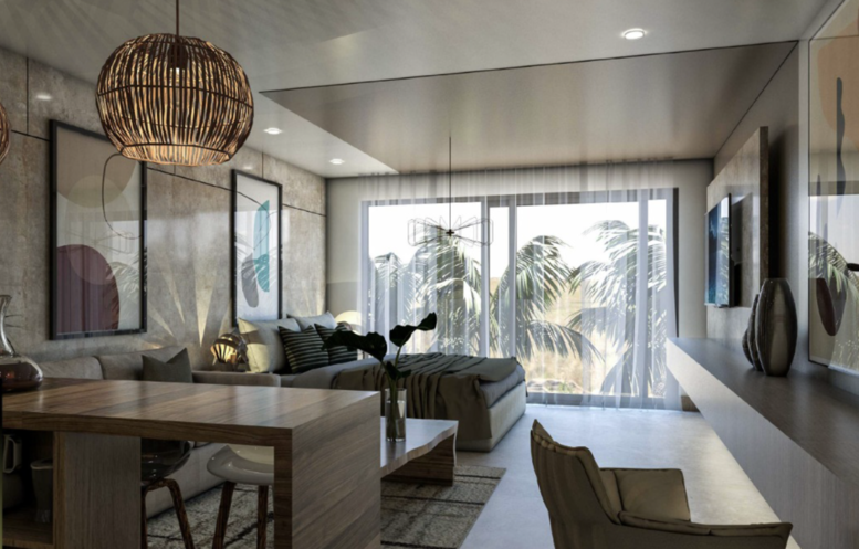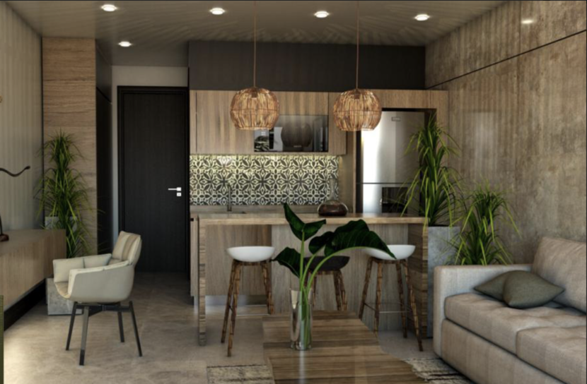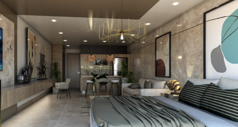 Every apartment will be carefully equipped and furnished, has a balcony and kitchen space, perfect for a short term stay so you can start renting it after delivery, Your guests can enjoy a great meal at the restaurant on-site , watch movie at the cinema or take a massage on the spa before heading to the beach club. Swim on the rooftop pool or the central lagoon on the way back and walk by the mayan sanctuary before getting a drink at the bar.